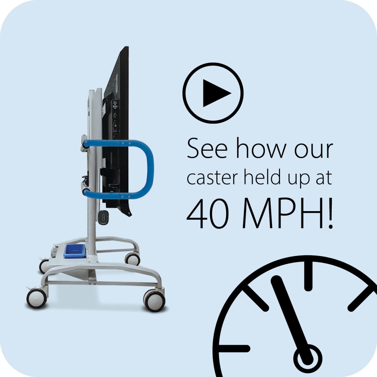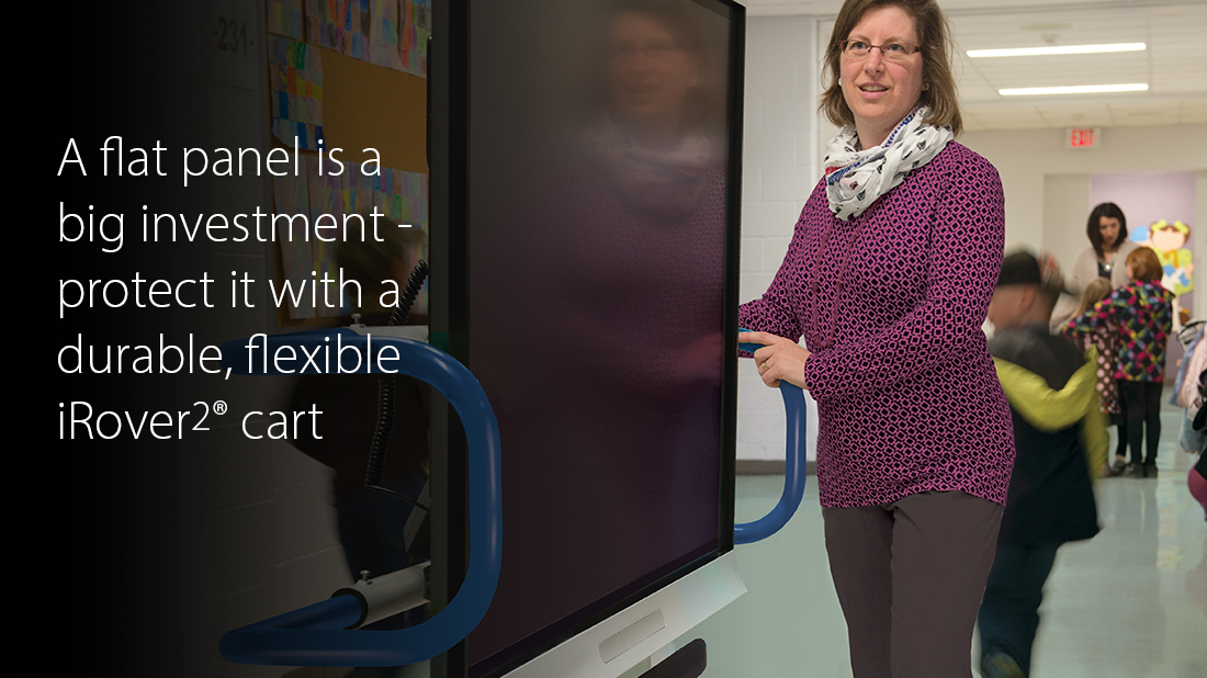 iRovers have 5" locking caster - up to 40% larger than competitor versions, ensuring a smoother and safer transport for valuable flat panels. Trust iRover2® for secure mobility