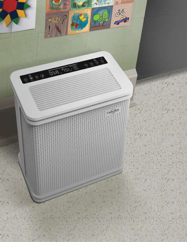 Our dual True HEPA and pre-filters capture at least 99.97% of airborne contaminants* in one pass and helps circulate the air of an average classroom** 5.2 times per hour.
