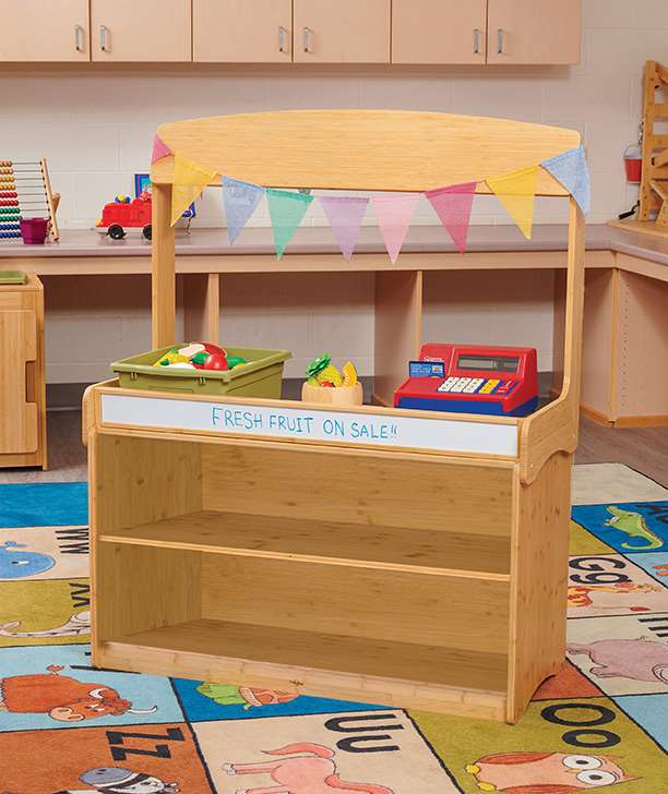 I’m a kindergarten teacher and I can’t think of a better piece of furniture for the classroom than the Copernicus Make-Believe Stand. It is beautifully made with sustainable bamboo and designed with functionality in mind. I’m guessing they had an educator help design it, as it’s brilliant and exactly what I hoped for! I appreciate that the top shelf is wider than other dramatic play stand-type units I’ve had in the past. This means that a lot more play can happen using the top shelf due to its width, as it holds a cash register and a lot of other materials easily, and there is a lip on one side. I love that the removable hide-away panel whiteboard can close the shelves when you don’t need them or simply want to hide some toys or materials. While the hide-away panel is stored on the back of the shelf, you can still use the magnetic whiteboard. The storage tubs are very sturdy and well-made to hold up to classroom and student use, and I was delighted to see the tubs were made in Canada. So far, we've turned the stand into different engaging, dramatic play and science exploration areas for our students. I’ve also collected a dowel and curtain to add to the holes at the top of the stand to turn it into a puppet theatre. If you choose not to use the stand as a dramatic play area, it is also well suited to a math or literacy station due to the whiteboard/magnet board and the storage for various materials. This is my favourite versatile piece of classroom furniture so far.