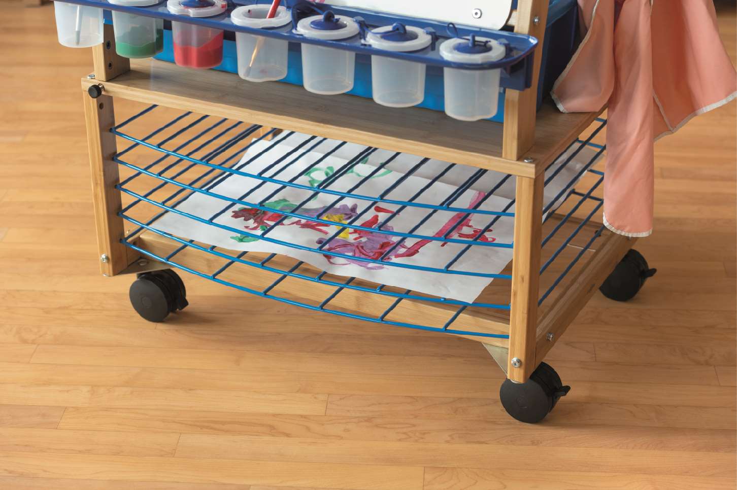 Bamboo is a renewable resource that grows quickly and sequesters carbon, unlike steel which produces carbon. The Bamboo Drying Rack has a natural aesthetic suited for neutral and early childhood environments. This Bamboo Drying Rack is a flexible and mobile place to store classroom artwork. With 5 drying racks, 2" casters and a bamboo tabletop surface, artwork can be safely stored and dried anywhere needed.