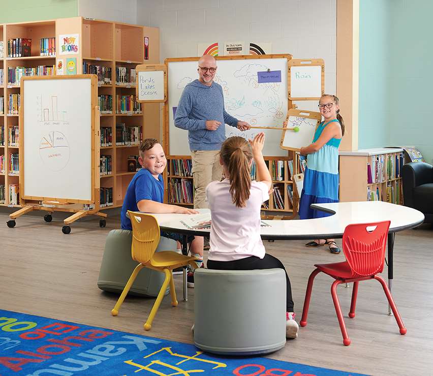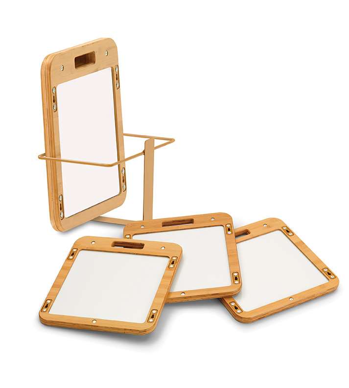 The Collaboration Whiteboard Slate Kit is an optional accessory to add to the Collaboration Whiteboard Base Model and includes 4 magnetic whiteboard slates with an 11" (28 cm) x 11" (28 cm) writing surface and brackets to attach the slates to the board for even more opportunities to brainstorm and create. Students can use these for individual or group work.