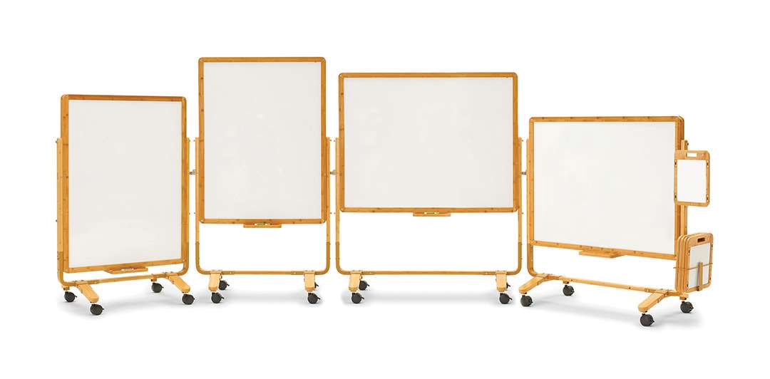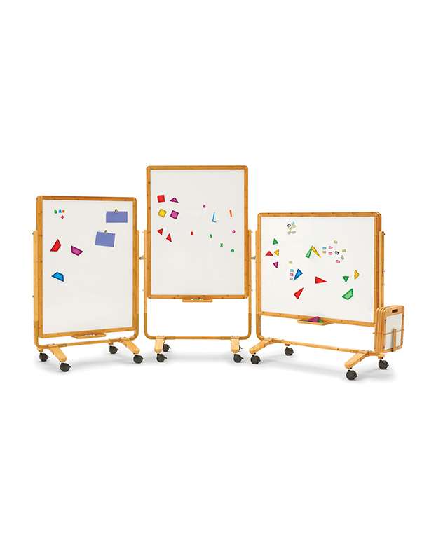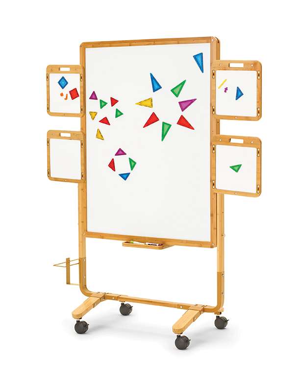 Bring ideas together with the Collaboration Whiteboard Premium Model. This new bamboo easel offers plenty of space for lessons. With a large 4' x 3' double-sided whiteboard positioned in vertical or horizontal and different height setups, the Collaboration Whiteboard is a flexible solution for lessons and activities. Also included are 4 magnetic whiteboard slates with an 11" (28 cm) x 11" (28 cm) writing surface and brackets to attach the slates to the board for even more opportunities to brainstorm and create. Students can use these for individual or group work. Multiple Collaboration Whiteboards can connect to form partitions in common areas.