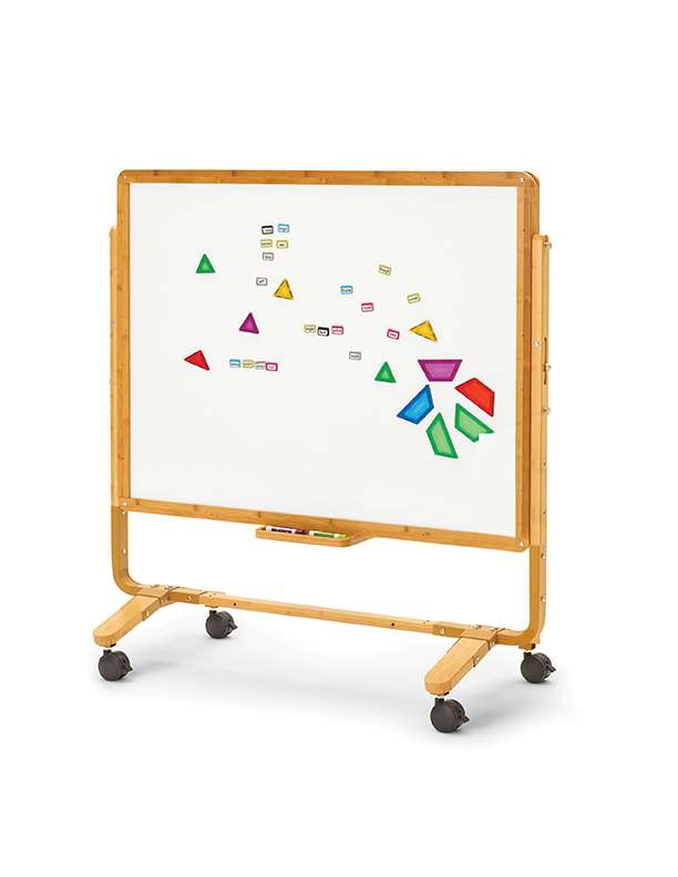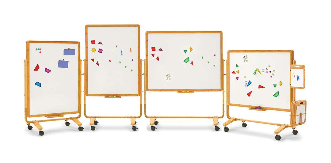 Bring ideas together with the Collaboration Whiteboard. This new bamboo easel offers plenty of space for lessons. With a large 4' x 3' double-sided whiteboard positioned in vertical or horizontal and different height setups, the Collaboration Whiteboard is a flexible solution for lessons and activities. Multiple Collaboration Whiteboards can connect to form partitions in common areas. Add the Collaboration Whiteboard Slate Kit (CWB-AC) which includes 4 magnetic whiteboard slates with an 11" (28 cm) x 11" (28 cm) writing surface and brackets to attach the slates to the board for even more opportunities to brainstorm and create. Students can use these for individual or group work.