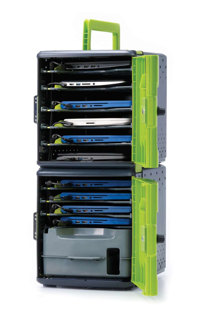 Developed with input from members of our Idea Lab educator advisory team, the new Tech Tub2® offers an affordable, flexible and mobile solution for charging and storing devices used in PreK-8 classrooms. The Tech Tub consists of two tubs permanently connected to make a single unit for 10 iPads®, Chromebooks or tablets. They are ideal for schools that share devices, or for 1:1 environments and they can be placed around the classroom to ease deployment bottlenecks.