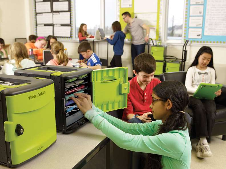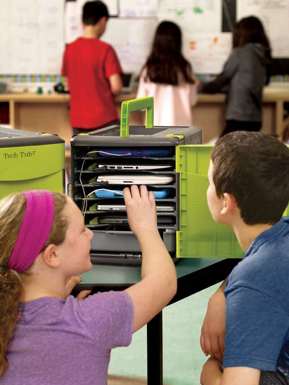Developed with input from members of our Idea Lab educator advisory team, the new Tech Tub2® offers an affordable, flexible and mobile solution for charging and storing devices used in PreK-8 classrooms. The Tech Tub stores 6 iPads®, Chromebooks or tablets. Store, charge and carry your devices anywhere in the school with ease. They are ideal for schools that share devices, or for 1:1 environments and they can be placed around the classroom to ease deployment bottlenecks.