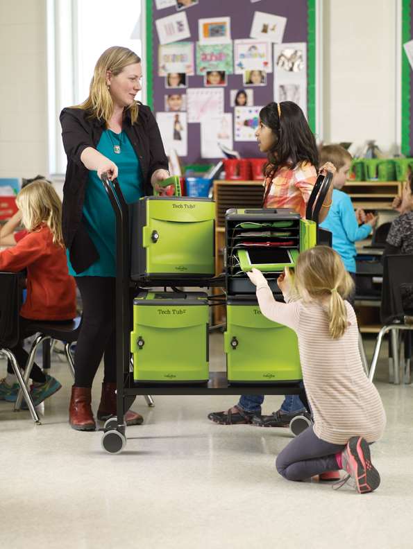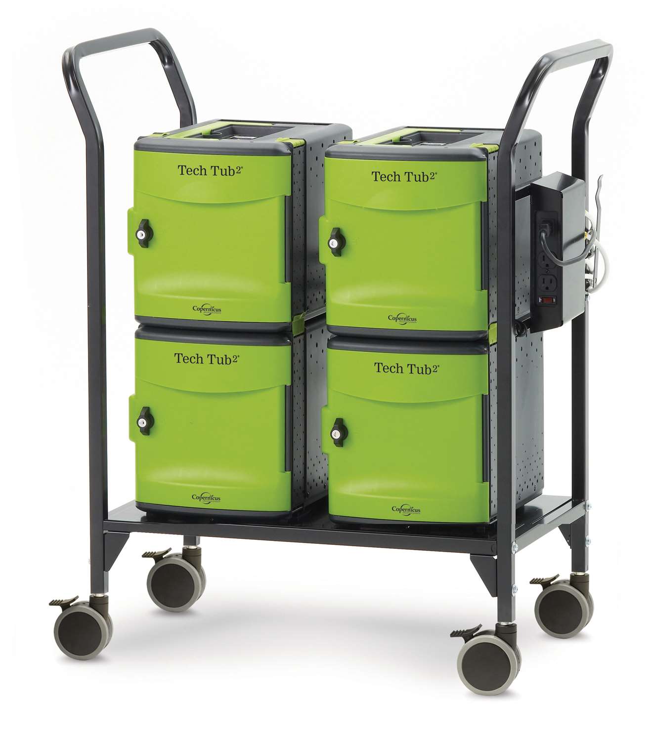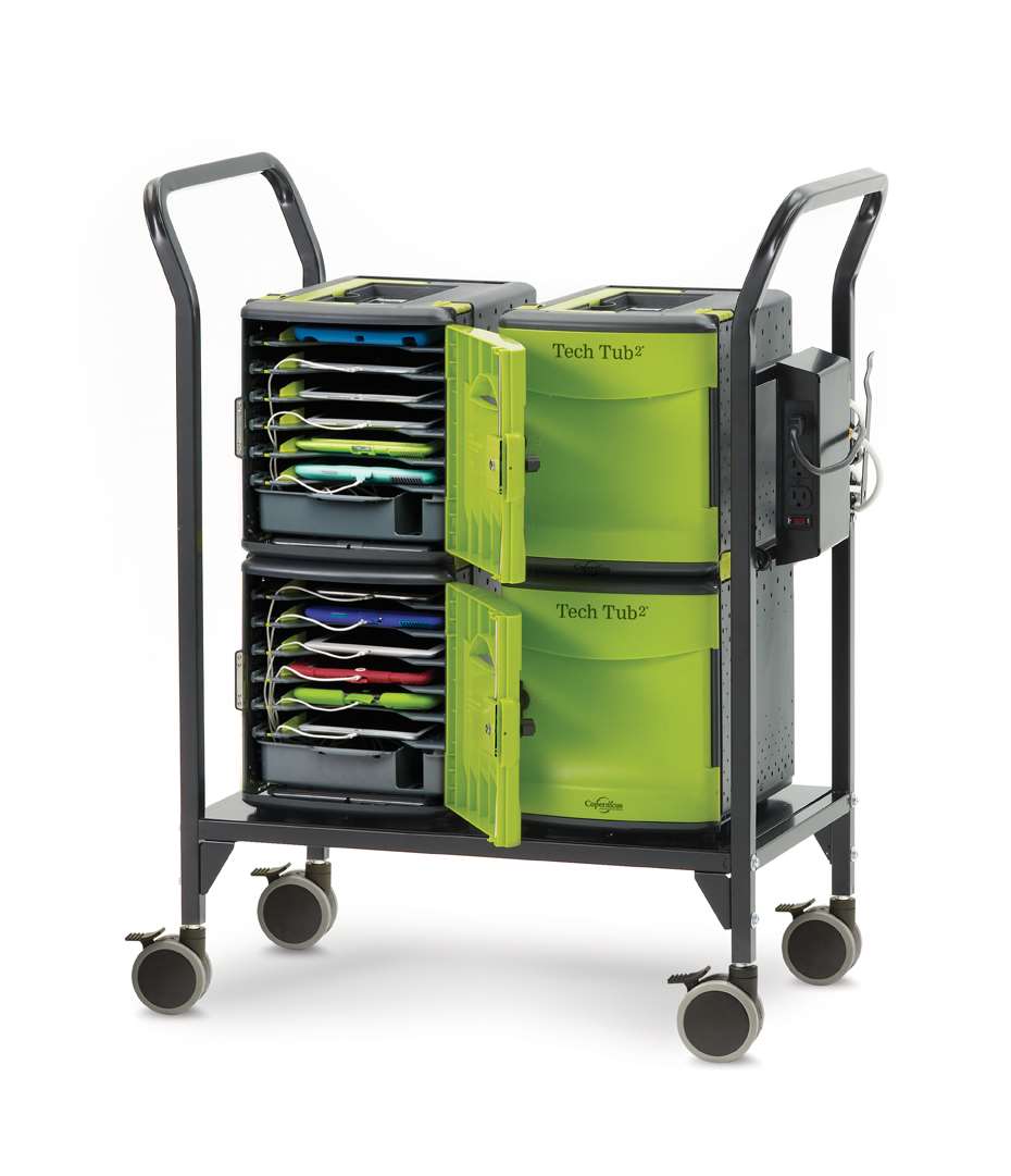 Lightweight Modular Carts move effortlessly over thresholds making it easy to share sets of devices throughout a school. This Modular Cart can charge and store up to 24 devices. With a tub-to-tub locking mechanism, the tubs lock together securing all the devices in the cart. For use within a classroom or placed in a central location where individual tubs can be signed out. They are ideal for schools that share devices, or for 1:1 environments and they can be placed around the classroom to ease deployment bottlenecks.