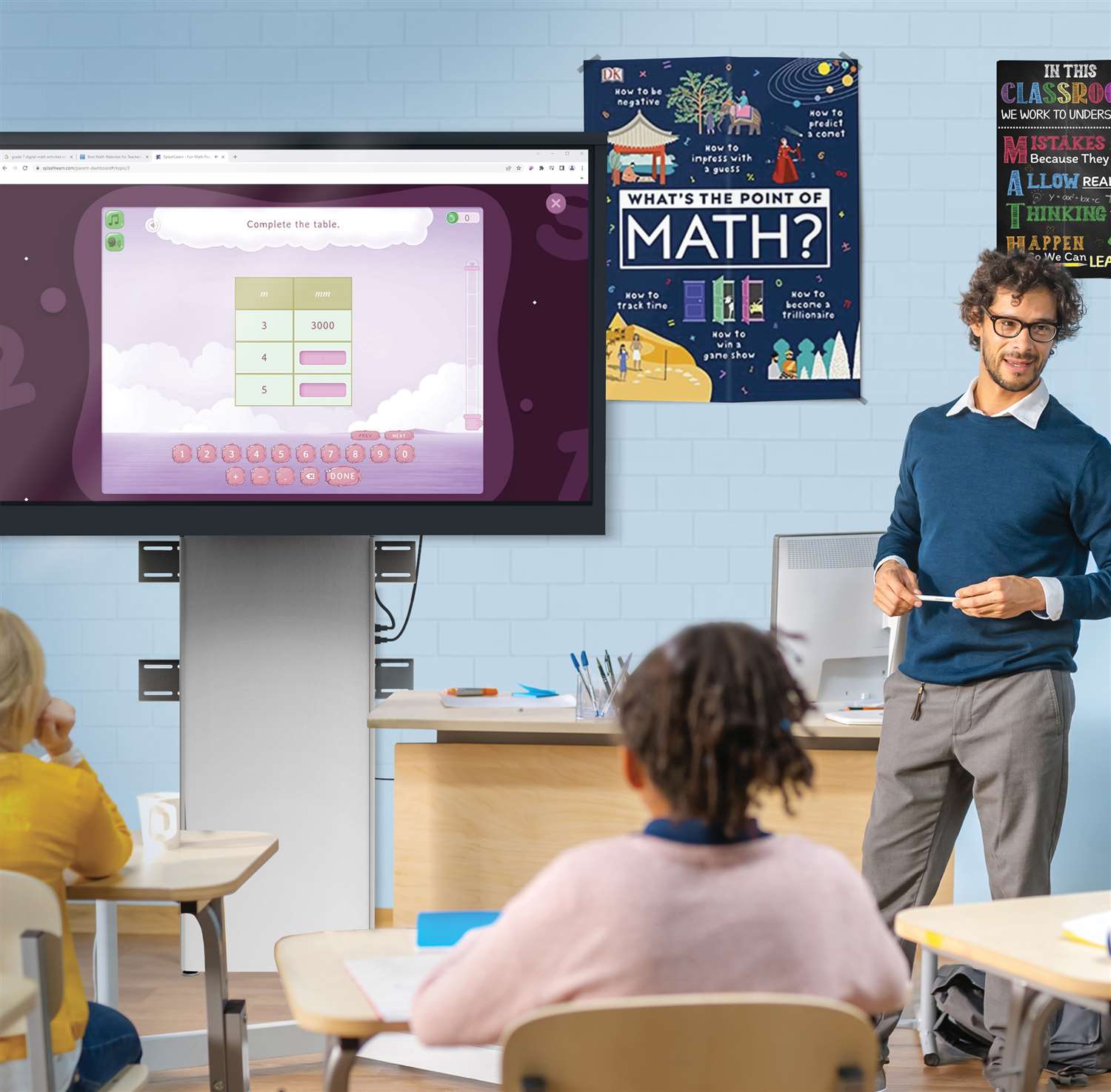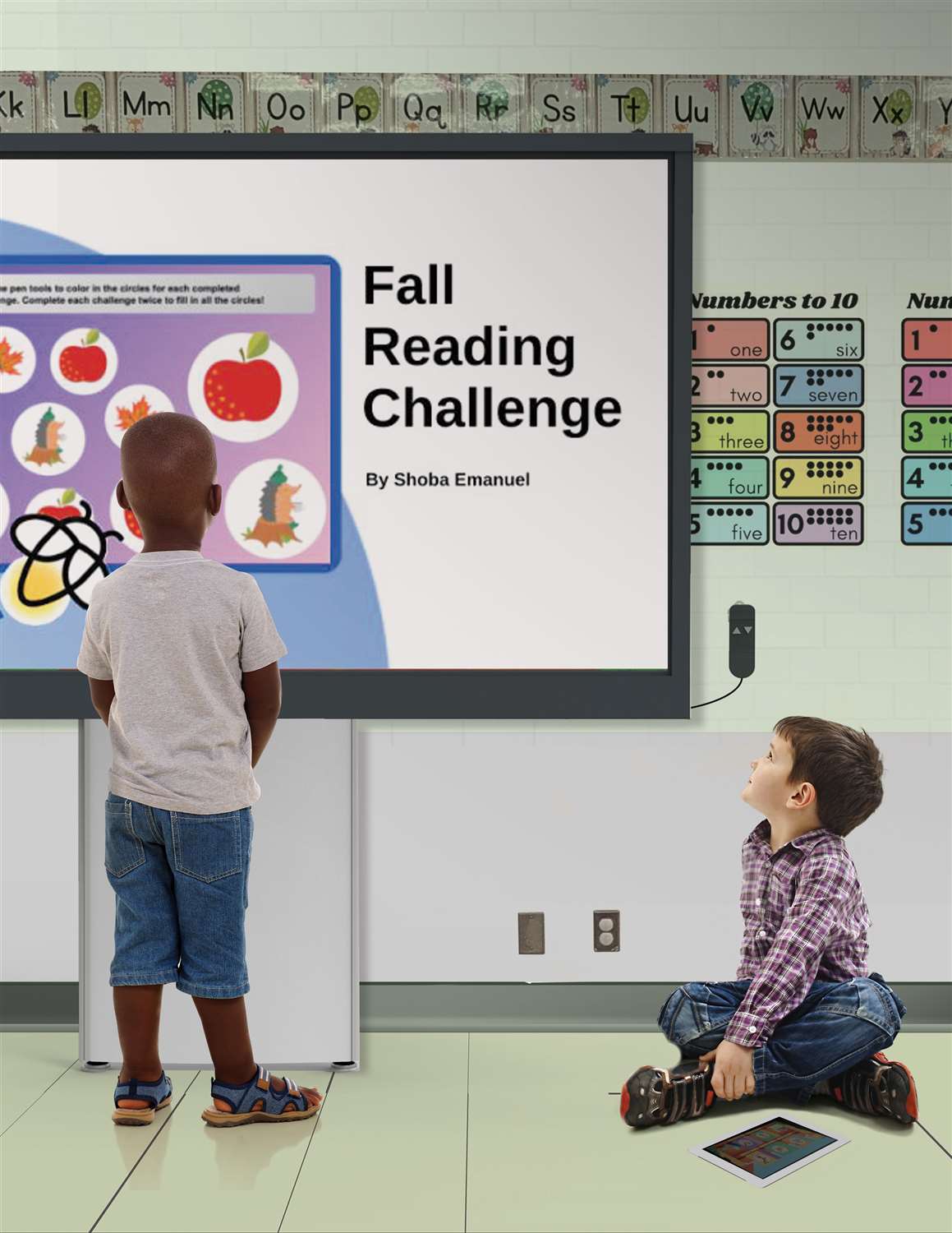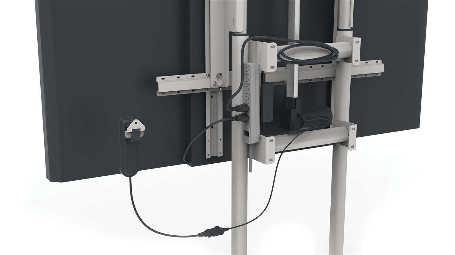 This height-adjustable wall-mounted flat panel is important for the classroom because it not only saves valuable classroom floor space but can also accommodate students with different physical abilities and needs. Its easy-to-use electric lift allows the flat panel height to be adjusted with a 17” range to accommodate students from different grade levels as classrooms change. Cords and support legs are concealed with a frame cover. There is a built-in clearance for mounting over marker ledges on whiteboards. This flexibility is also ideal in media and library spaces where many students participate in activities.