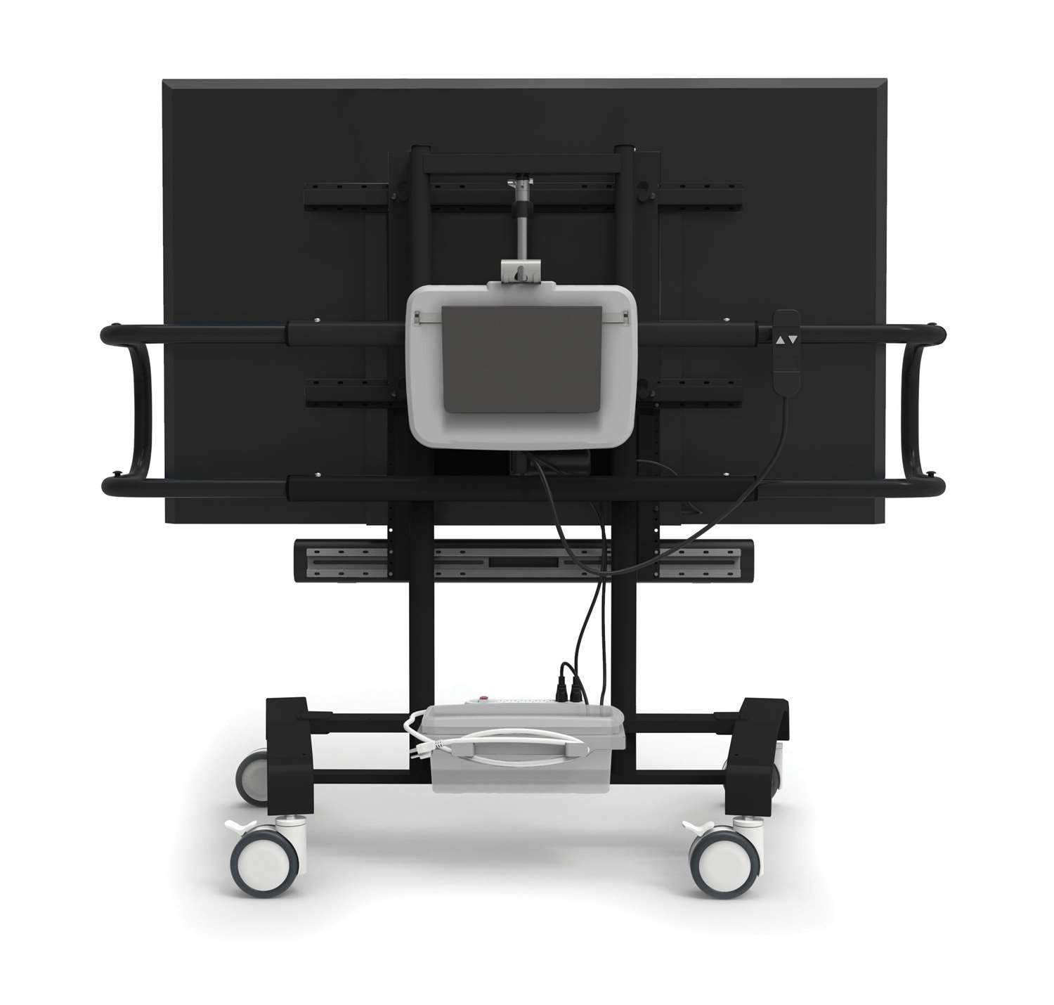 Our school’s iRover2 for Interactive Flat Panel Cart has everything that you need for a mobile device! I am the Instructional Coach at two schools and love how easy it is to move this cart throughout the school, the wheels are so durable for movement. The frame is ideal for teaching in multiple grades, having sturdy handles for kids of all ages, a durable laptop tray, a holder for hand sanitizer and bucket for cords are all things that are great additions. The electric lift is perfect for a K-7 school, so that all students can reach and use our interactive board with ease. Most teachers at our schools are wishing their boards were not mounted to the walls after getting our new carts. I can see us purchasing more carts in the future, as the price is very reasonable compared to others we have purchased in the past.