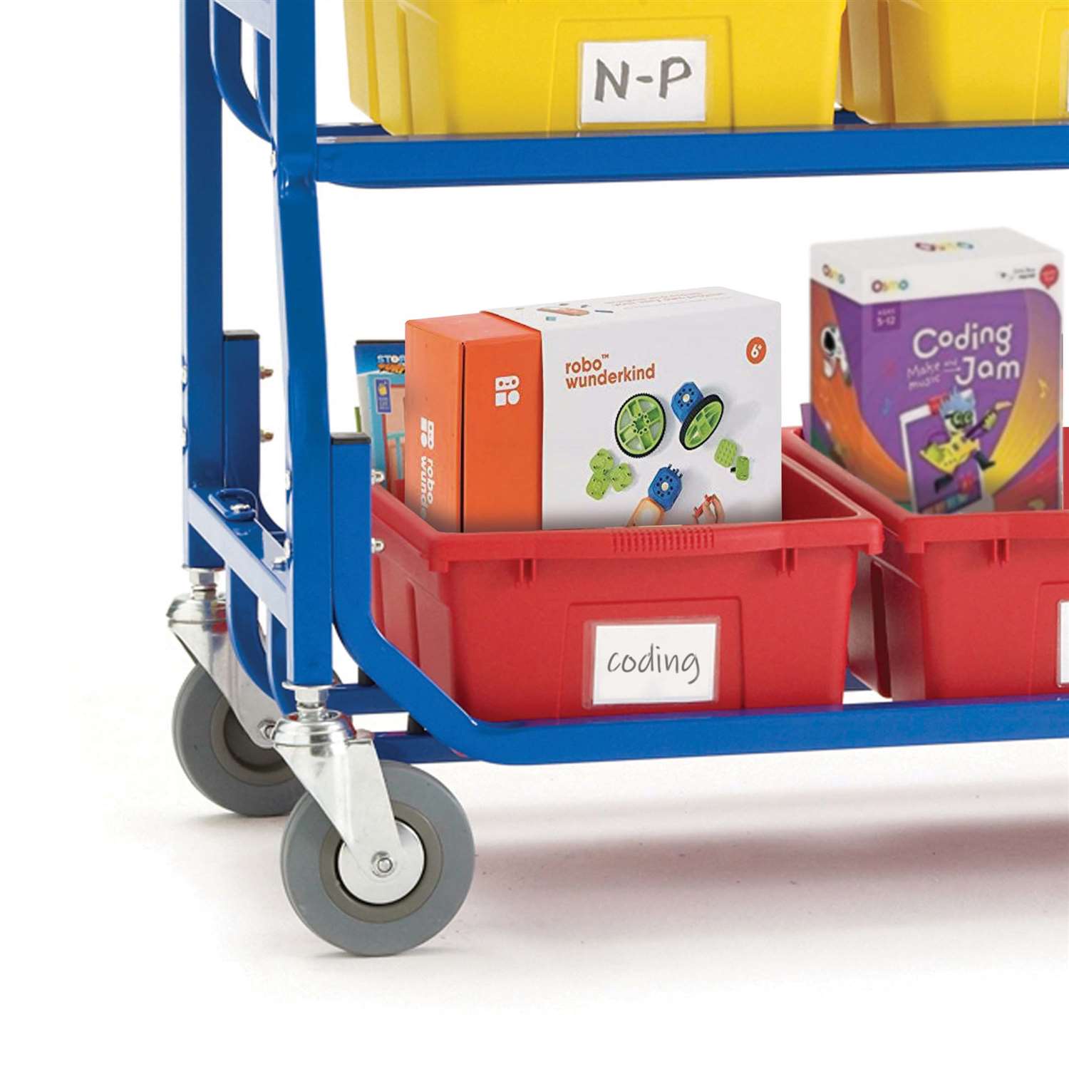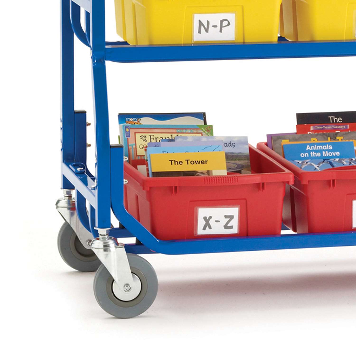 These carts make the perfect in-class storage solution, where students can help themselves to a book. They are also useful in Makerspaces for organizing or color coding materials and storing tools. The frame is designed with strong 1” tubing and includes large 5” casters that move easily over almost any surface and stand up to the rigors of being maneuvered throughout a school. This cart can hold up to 90lbs!
