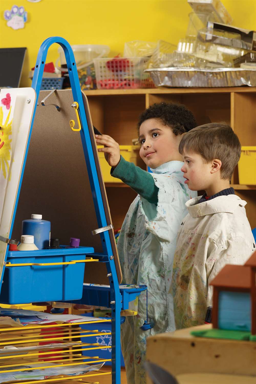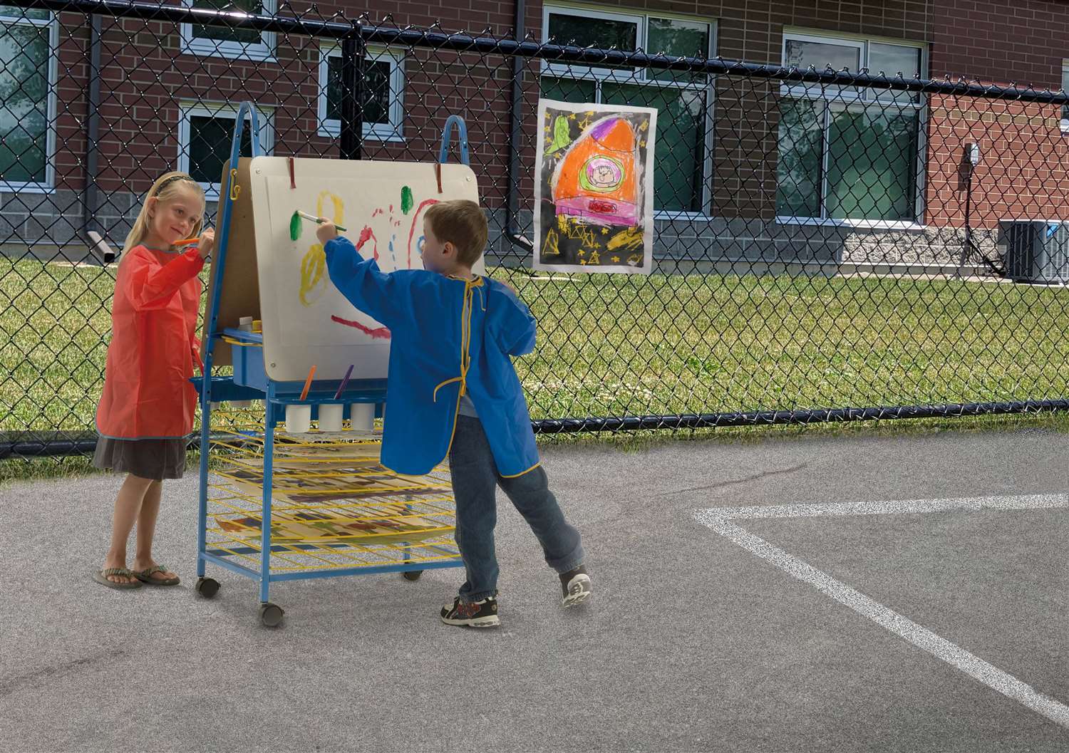 The Double Sided Art Easel is a collaborative and creative sensory station–a perfect addition to primary classrooms. With plenty of storage, removable paint trays and spill-proof caps on the paint pots, keeping things clean and tidy is a cinch.