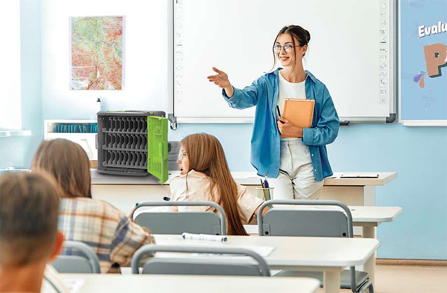 In an emergency, a teacher can quickly unlock and distribute the phones to students within the classroom without any specialized tools.