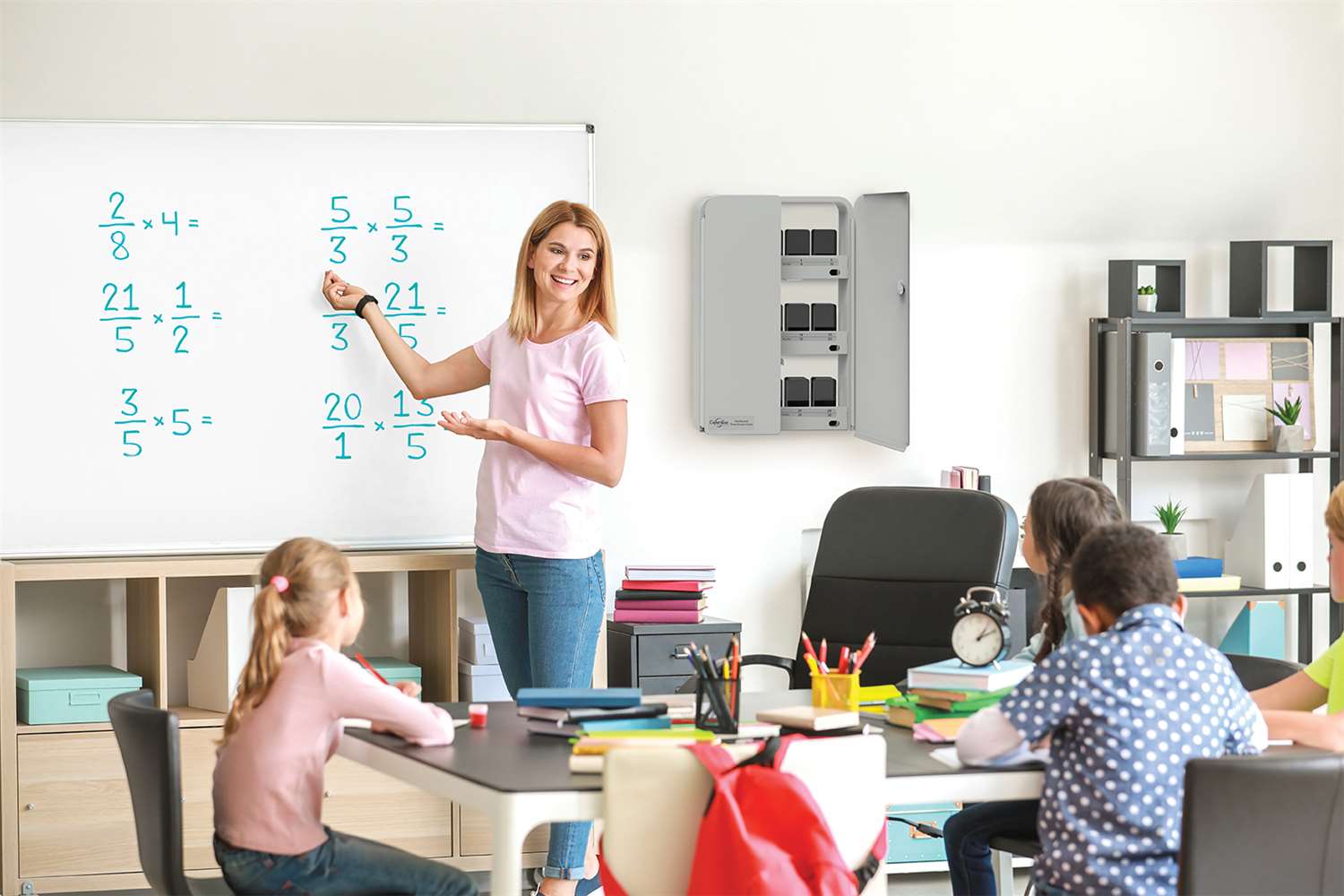 In an emergency, a teacher can quickly unlock and distribute the phones to students within the classroom without any specialized tools.