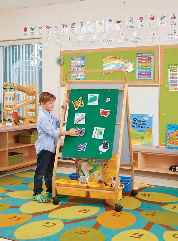 Our popular Primary Teaching Easel is now available in bamboo! The Bamboo Primary Teaching Easel is a valuable tool for early childhood and primary teachers to orchestrate and store lessons. With room for two little learners, independent and group lessons are a breeze. This easel has an extra long front dry-erase board that measures 40” H x 28” W to accommodate little learners and includes a rear felt board.