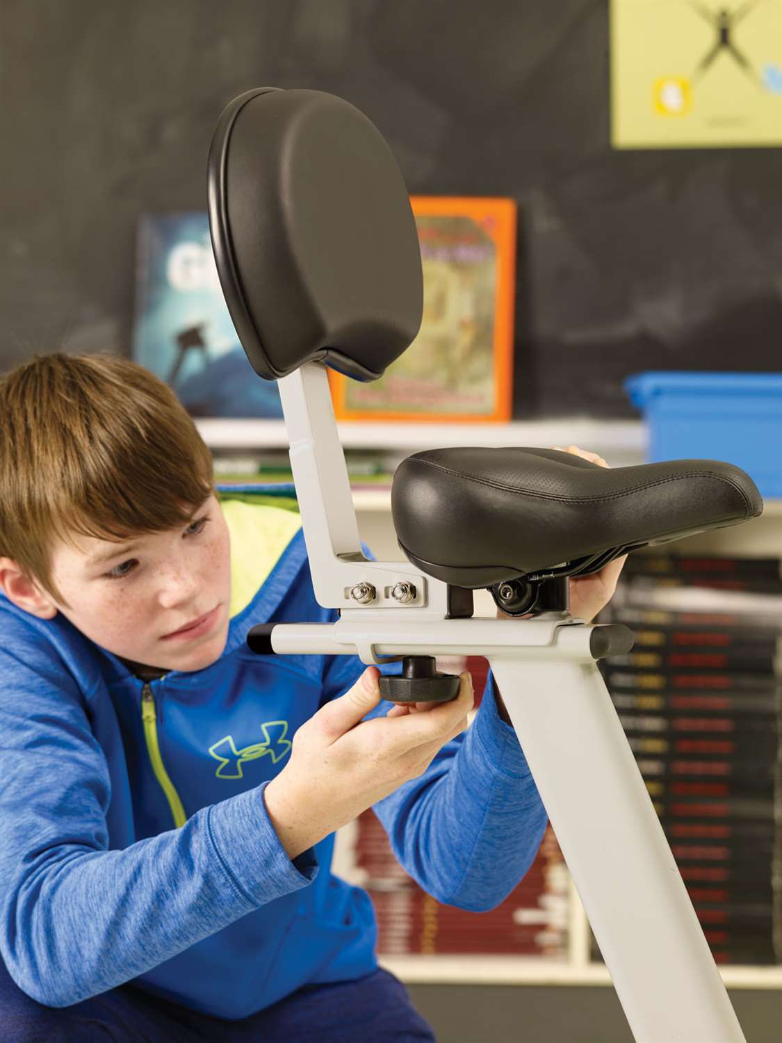 The Self-regulation Classroom Pedal Desk - Premium with Large Desktop is designed to provide opportunities for students, grades 3-6, to self-regulate through movement without having to leave or disrupt the class. It is ideal for inclusive environments and helps kinesthetic learners and any student who needs to get the wiggles out so they can refocus and engage in learning. In just a ten-minute ride, students can become more engaged and ready to learn. Now with a larger desktop that is better suited to a wider range of activities. Learn more about our Ride to Regulate Initiative.