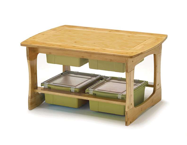 Bamboo is a renewable resource that is fast growing and sequesters carbon, unlike steel which produces carbon. The Bamboo Sensory and Construction Bricks Table has a natural aesthetic suited for neutral and early childhood environments. Children learn about the world through direct sensory experiences, and the Bamboo Sensory and Construction Bricks Table is the perfect learning center for building fine motor, cognitive, and self-regulation skills. With two height settings (toddler or primary), it can accommodate a variety of early childhood and prek-k classroom environments. Includes 4 tubs (2 with lids), and a construction bricks tabletop.