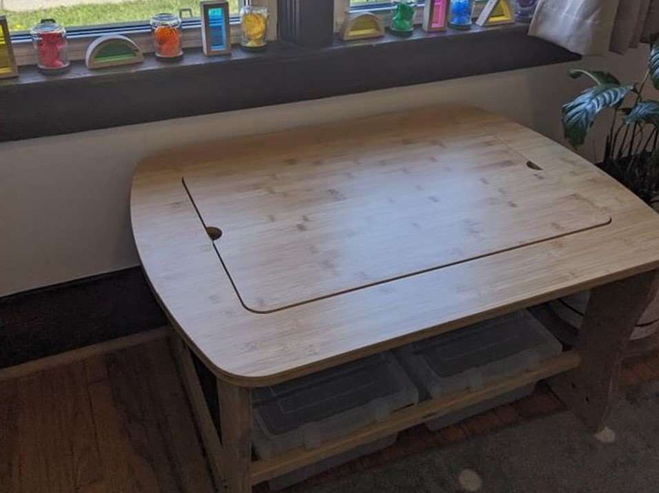 • 2 Large Open Tubs with lids on the bottom of the table to store sensory items, toys and other supplies