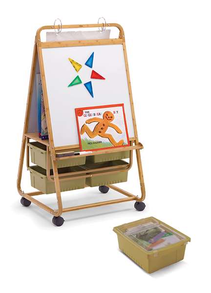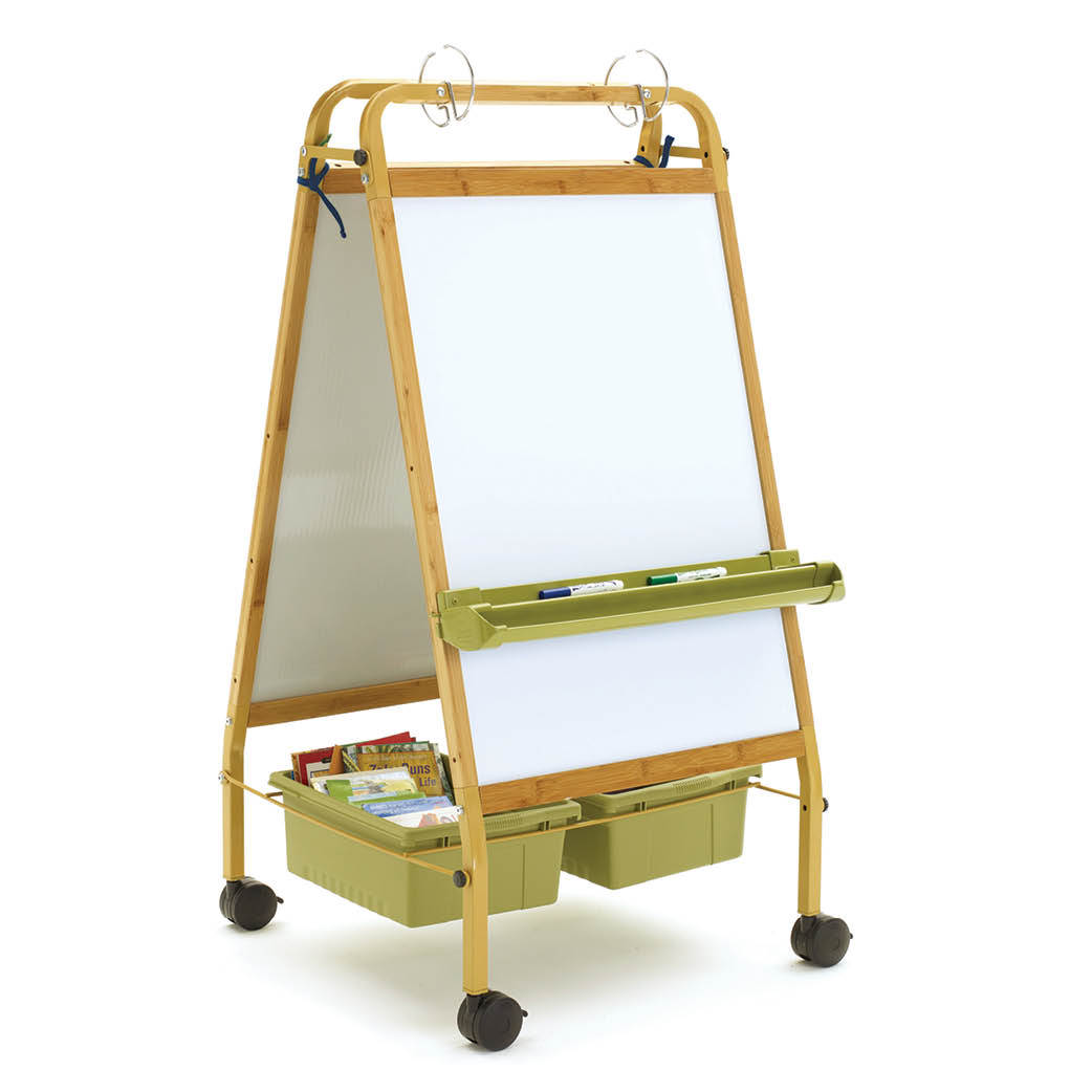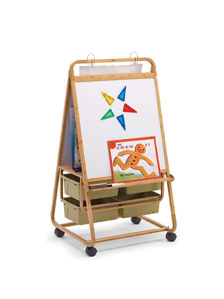 Our popular Primary Teaching Easel is now available in bamboo! The Bamboo Primary Teaching Easel is a valuable tool for early childhood and primary teachers to orchestrate and store lessons. With room for two little learners,  independent and group lessons are a breeze. This easel has an extra long front dry-erase board that measures 40” H x 28” W to accommodate little learners and includes a rear felt board.