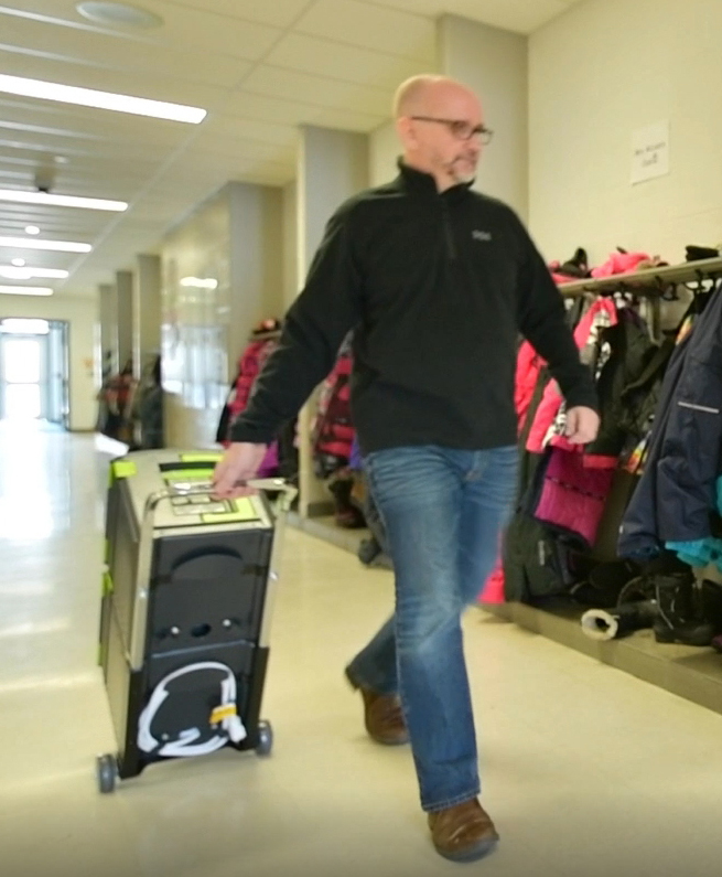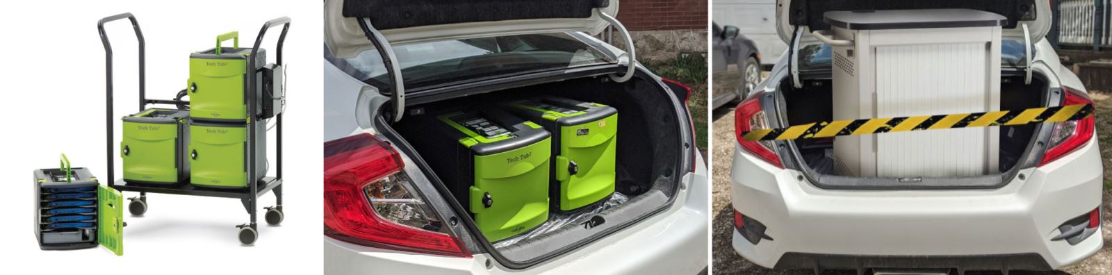 Tech directors used Tech Tubs to deliver devices door-to-door during the pandemic.